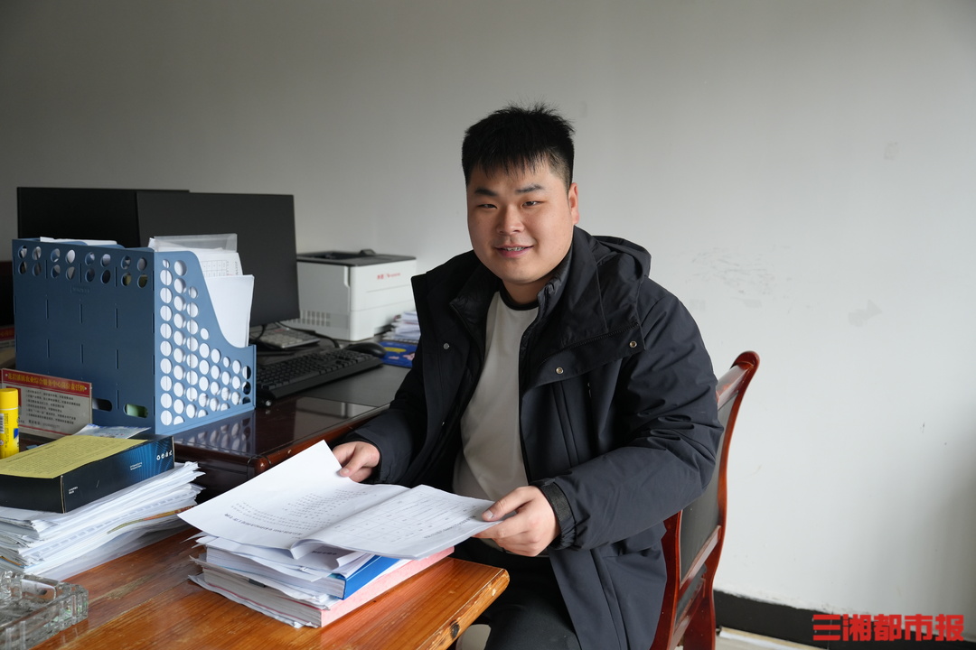 镇农业服务中心办公室里电话响起,接电话的年轻人叫姚如扬,是中心的一名“00后”,目前是花岩溪镇生态事务中心的主任。