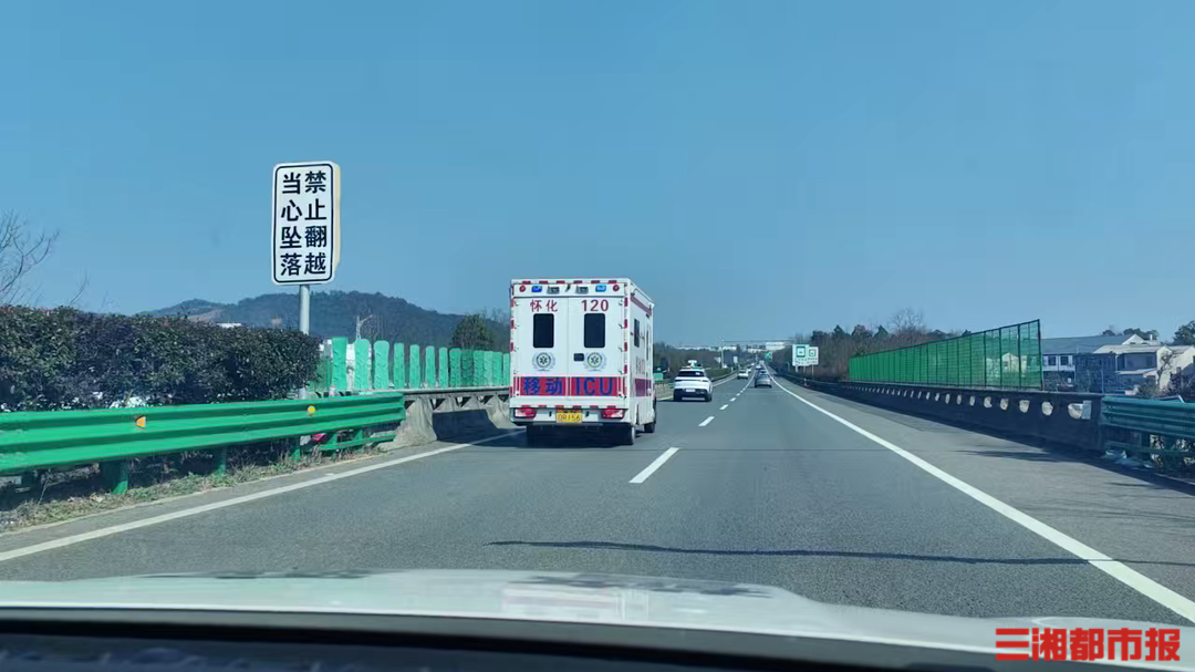 怀化交警第一时间在医院门口等候,全程开道引导;怀化、娄底、长沙三地高速交警克服春运车流高峰,加强路面巡逻管控,分段接力护航,为救护车开辟“生命通道”;长沙交警提前优化沿线信号灯配时,打造“绿波带”,全力保障转运路线畅通无阻,以最快速度护送患者抵达医院。