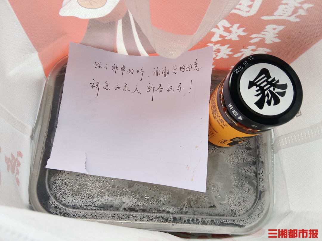 民警来不及问清楚情况,该女士就带着孩子离开了。民警打开袋子,发现里面是两盒热腾腾的饺子,还贴心地准备了一次性碗筷和辣椒酱。