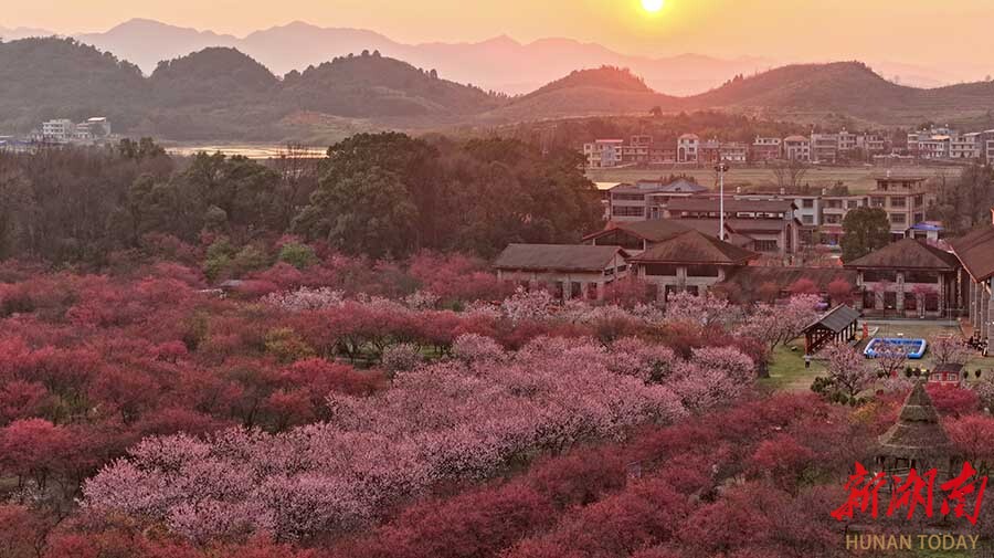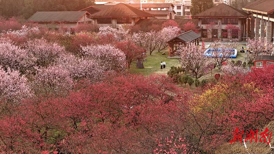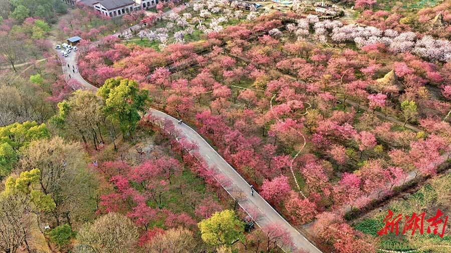 2月15日,常宁市罗桥镇百万樱花园千亩樱花迎春绽放,吸引游客徜徉花海,乐享春节假期。 刘东华 摄(湖南图片库)
