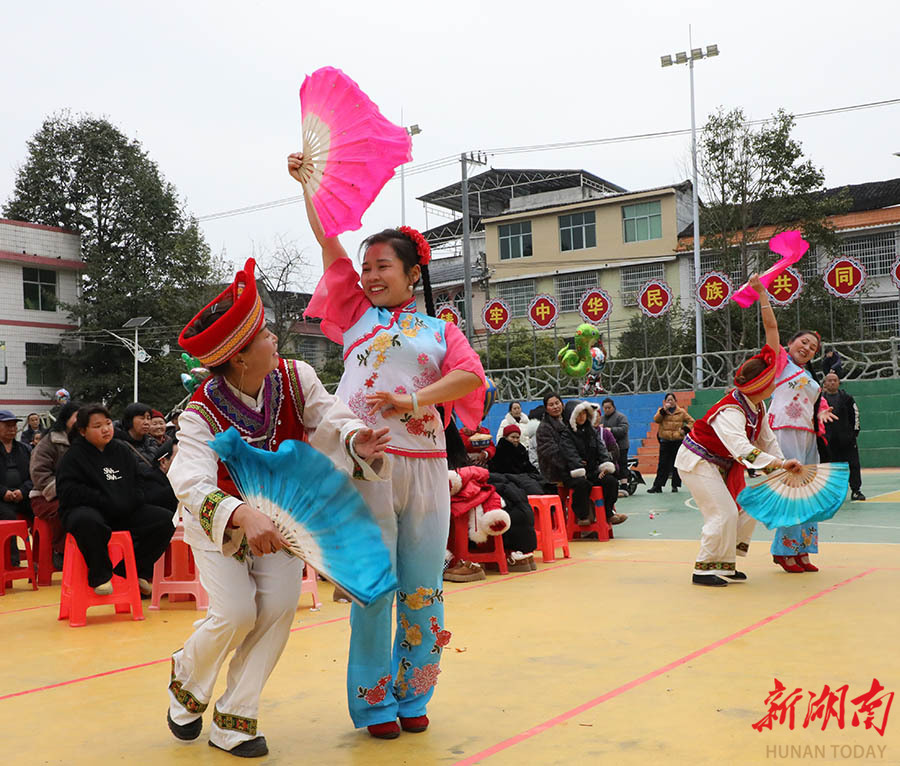2月18日,保靖县清水坪镇文体广场,非遗跳花灯表演吸引众多游客前来观赏。春节期间,该县将非遗与节日庆祝相结合,通过系列非遗展演活动,营造喜庆祥和的节日氛围,让群众近距离感受传统文化的独特魅力。 俞采华 余文扬 摄影报道(湖南图片库)