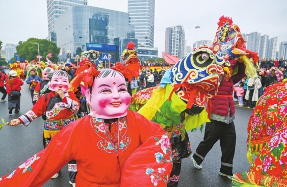 2月19日,吉首乾州春会巡游表演吸引众多市民和游客围观。华声在线全媒体记者 郭立亮 摄