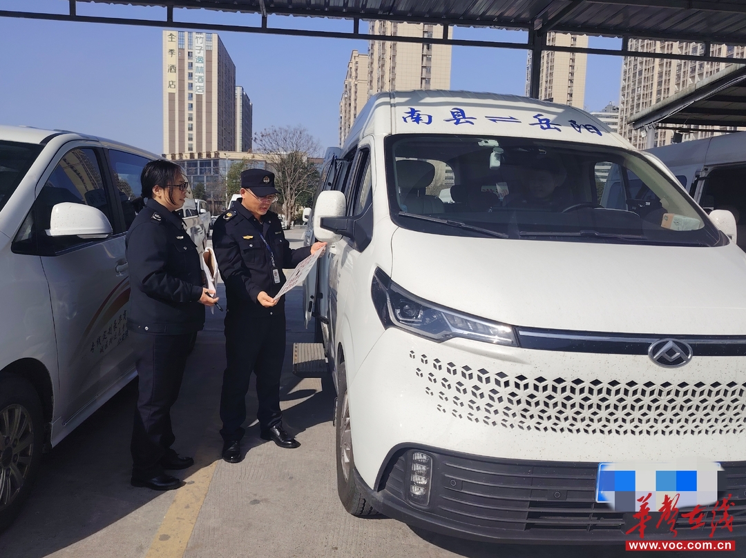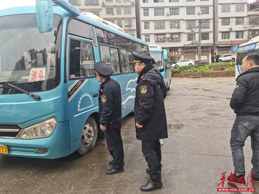 2月22日,岳阳市交通运输综合行政执法支队在市火车站、中心客运站、洞庭汽车站等重点区域,对客运车辆进行安全检查,开展“打非治违”专项整治,护航人民群众平安、便捷、温馨返岗。(供图:赵立文)