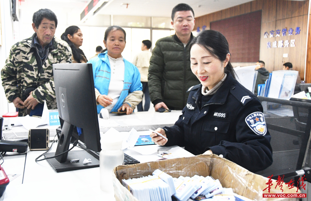 2月20日,江永县公安局人口与出入境管理大队民警在为返乡群众办理身份证业务。春节期间,该大队民警坚守岗位,为返乡人员及本地居民提供户籍、身份证等便民服务。田如瑞 摄(湖南图片库)