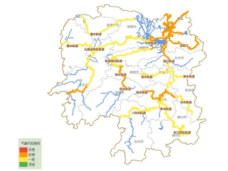 2月23日湖南省航道气象风险等级预报图关注与建议