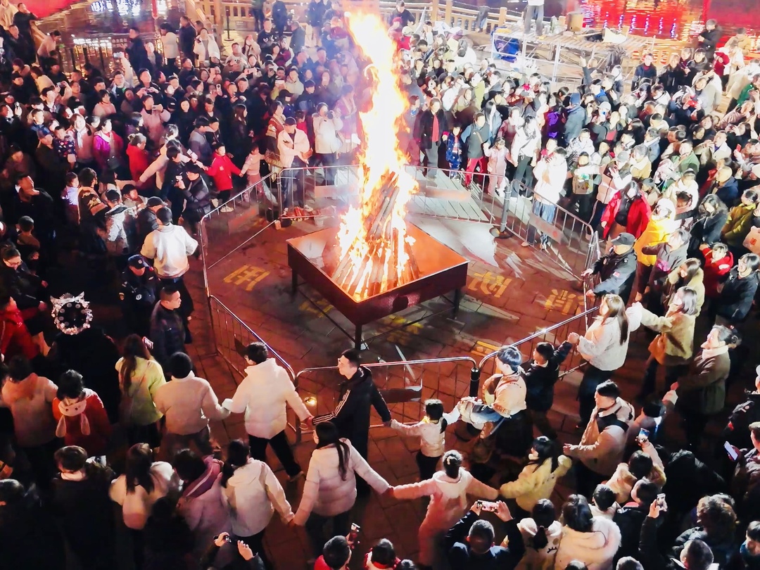 榆树湾青春广场游客参与篝火晚会。张卓 摄