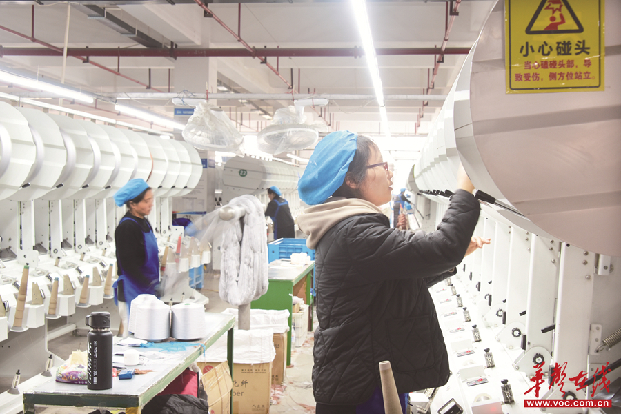 位于澧县的湖南萌恒服装辅料有限公司,工人在前纺车间生产线上忙碌。柏依朴 龚姜涛 摄影报道(湖南图片库)