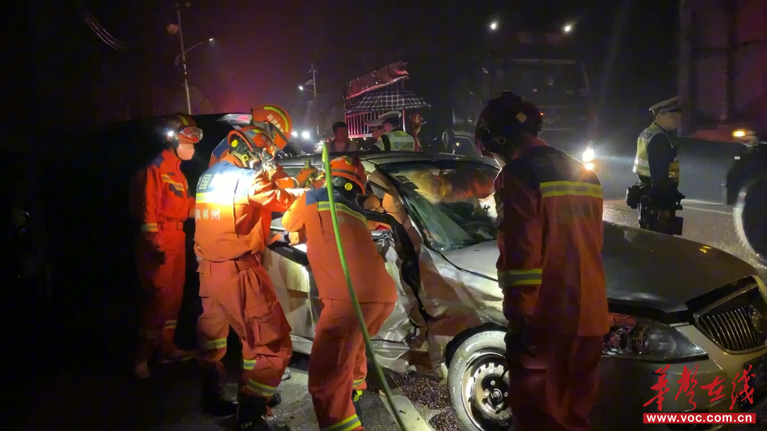2月25日19时14分,临武县武水镇东木冲发生一起两车相撞事故,一名乘客被困车内。当地消防部门赶赴现场处置,利用液压工具,10分钟作业,救出被困在副驾驶位的乘客。