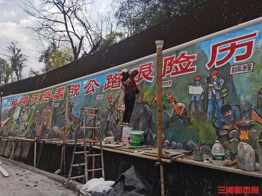 华声在线2月27日讯(文/视频 全媒体记者 高煜棋 通讯员 王代乐 陈瑜坤)2月27日,西藏自治区林芝市墨脱县,80岁的湖南画家宁敏帆轻轻放下画笔。长26米、耗时两个月完成的墨脱公路主题墙画,在高原上徐徐展开。作为湖南省美术家协会会员、知名工艺美术师,宁敏帆从湖南奔赴雪域高原,以手中画笔讲述“天路”故事、致敬英雄。