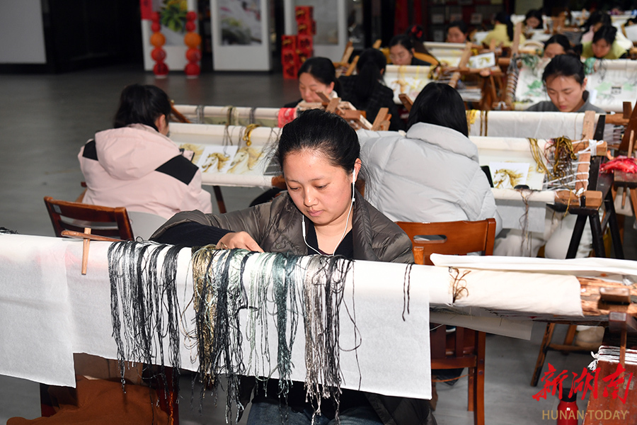 2月28日,湖南省湘绣研究所刺绣车间内,绣娘正赶制新春订单。春节后,该所全员复工,全力投入商务礼品、文创产品及新中式服饰的生产。去年,其产品亮相国内外展会37场,推出45款新中式湘绣服饰,多项作品获奖并入选全运会非遗特许商品。华声在线全媒体记者 田超 通讯员 邓文芳 摄影报道
