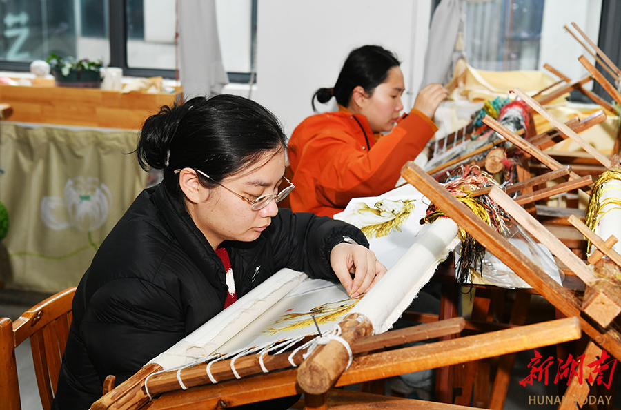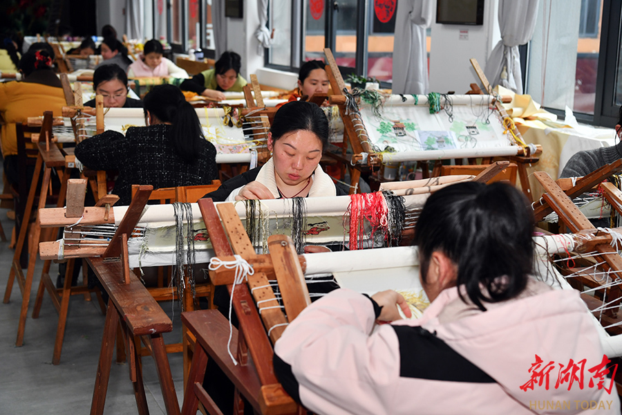 2月28日,湖南省湘绣研究所刺绣车间内,绣娘正赶制新春订单。春节后,该所全员复工,全力投入商务礼品、文创产品及新中式服饰的生产。去年,其产品亮相国内外展会37场,推出45款新中式湘绣服饰,多项作品获奖并入选全运会非遗特许商品。 华声在线全媒体记者 田超 通讯员 邓文芳 摄影报道