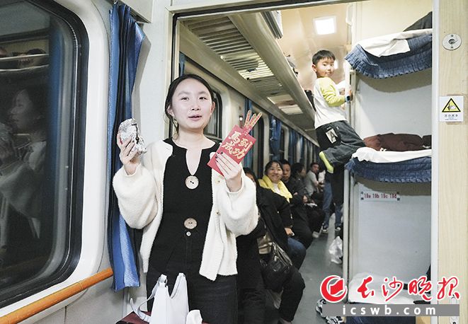 2月25日,正月初九,长沙晚报社新春走基层的记者带着一些自制的福袋,挤进了由长沙始发、开往广州白云的K6521次列车,准备用它们换一车厢的故事。