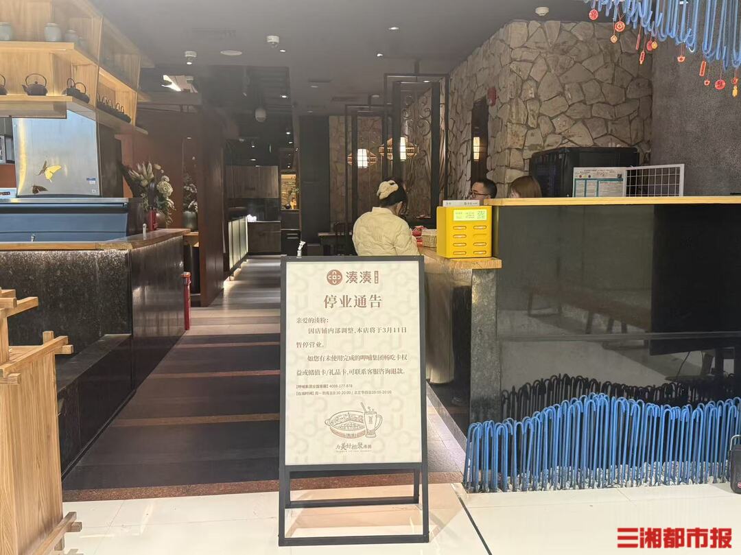 一位该店收银台的工作人员告诉三湘都市报记者,该店为品牌在长沙的最后一家门店。这也意味着,随着门店3月11日停止营业,湊湊火锅全线退出湖南市场,结束在星城的多年经营。