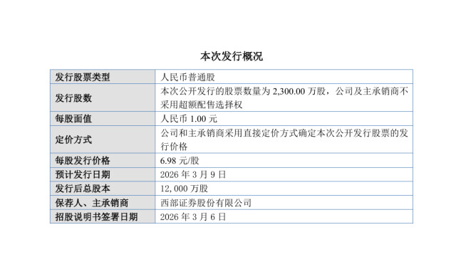 3月9日,族兴新材正式启动北交所申购。根据发行公告,公司本次拟公开发行2300万股,其中网上发行2070万股,发行后总股本达1.2亿股,发行定价6.98元/股。
