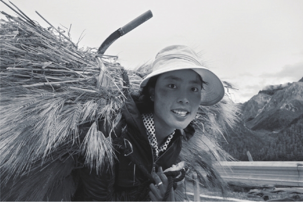 收青稞的女人。