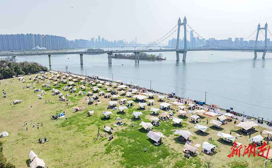 3月14日,长沙市开福区湘江风光带,在明媚春光中,人们搭帐篷、铺餐垫,尽情享受春日暖阳。华声在线全媒体记者 李健 摄