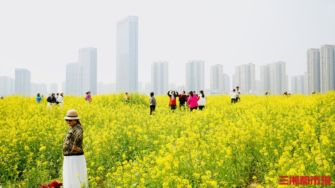 走进洋湖湿地公园,大片油菜花田正值盛花期。站在田埂上望去,花海随风起伏,与远处道路高楼相映成景。“城里看花精致,更有春天的味道。”在闲暇之余带着老伴来感受春日花海的张大爷举起相机,在田边记录这片春日花海。
