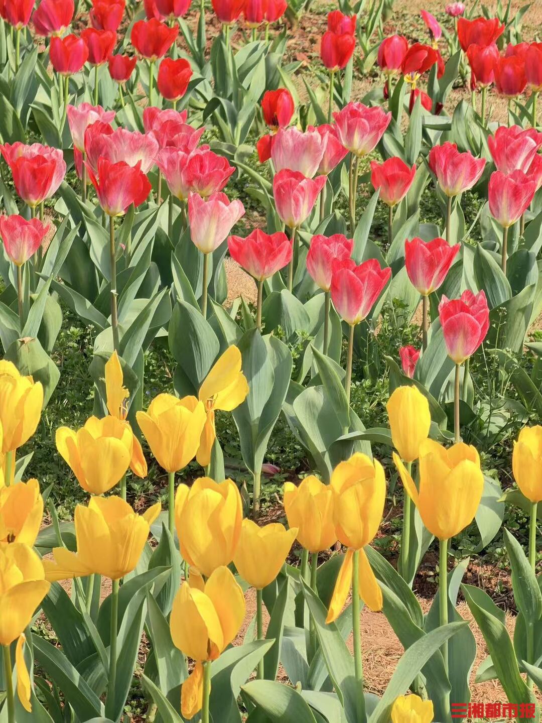不仅省植物园,在长沙园林生态园也能看到成片郁金香。该园位于开福区,是一处集园林展示与休闲观光为一体的生态公园,每到春季,园区都会布置主题花展,郁金香花田吸引不少人前来踏青。