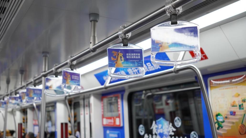 步入地铁2号线主题列车,仿佛置身于维权知识的海洋。车厢内进行了全方位的视觉设计,从车门贴、车窗贴到看板和拉手环,每一处细节都被赋予传播使命。融合长沙地标与“3·15”元素,以简明图文传播消费政策、维权渠道及风险防范提示。