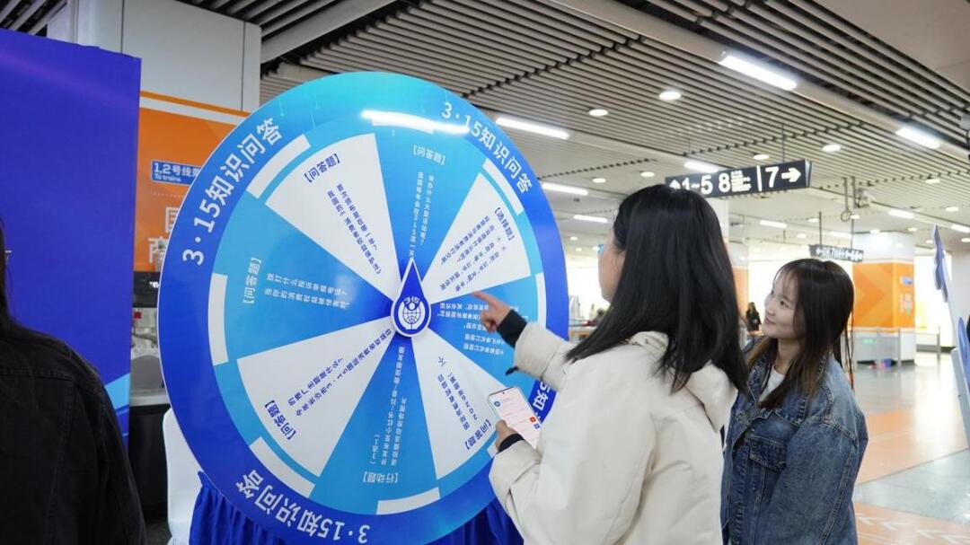 列车穿行传递理念,站厅互动点燃热情。在五一广场站,一场别开生面的“3·15维权知识大转盘挑战”吸引大批乘客参与。市民转动转盘,随机抽取关于消费权益常识、维权途径选择、消费陷阱识别等问题进行挑战。这种寓教于乐的宣传方式,打破了传统单向灌输模式,将消费者权益保护相关法律条文转化为可参与、可体验的趣味互动。现场欢声笑语不断,科学消费法治意识与共治共享维权理念浸润市民心田,深化了市民对“长沙放心消费城市”的认识。