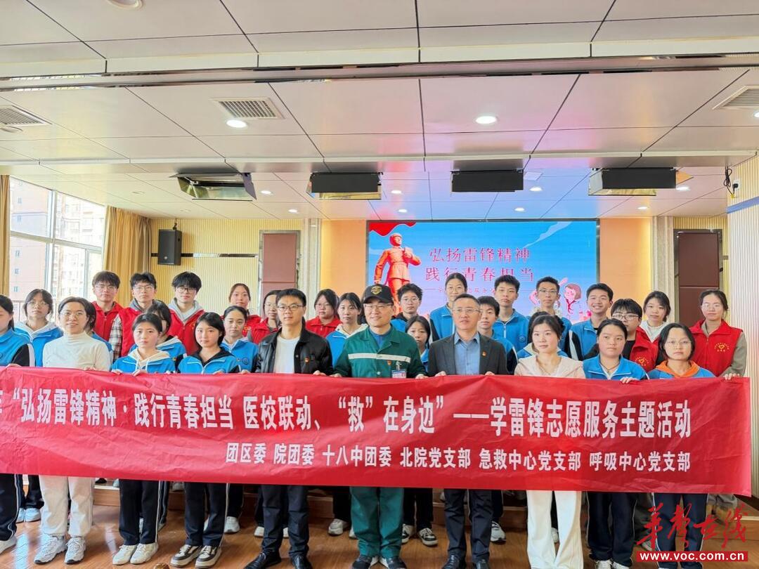 华声在线3月16日讯(通讯员 谭苗苗) 三月春风暖人心,雷锋精神永传承。3月12日,郴州市第十八中学联合市第三人民医院开展“弘扬雷锋精神 践行青春担当——医校联动 ‘救’在身边”学雷锋志愿服务主题活动。此次活动打破传统志愿服务模式,以“走出去献爱心+请进来学技能”双向模式,将践行雷锋精神与提升青少年生命安全意识、社会责任感深度融合,让雷锋精神在守护生命、传递健康的实践中焕发出新的时代光彩。