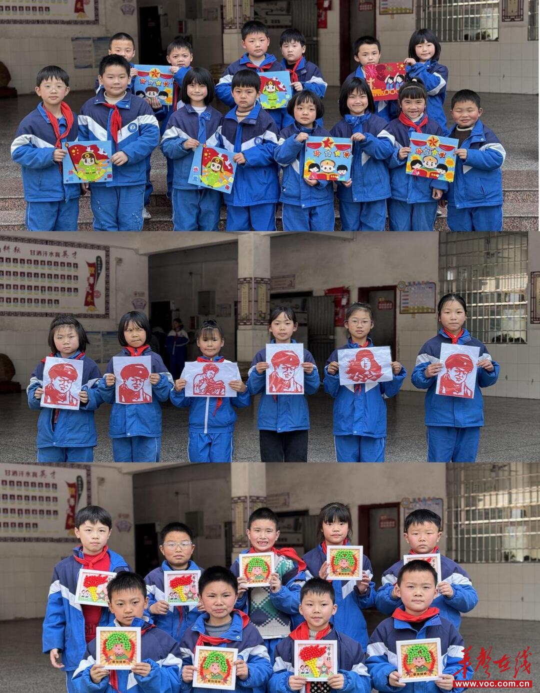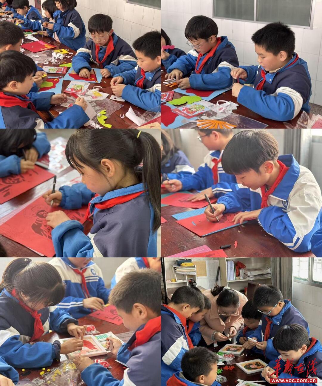 大家刻、贴、粘,互相帮助、分工协作,在专注创作中践行互助精神。一张张普通的彩纸,变成了生动的雷锋形象;一颗颗棉球,变成了鲜艳的五角星、温馨的雷锋图案。一件件稚拙却饱含心意的作品,承载着同学们对雷锋精神的理解与传承,现场暖意融融、充满正能量。