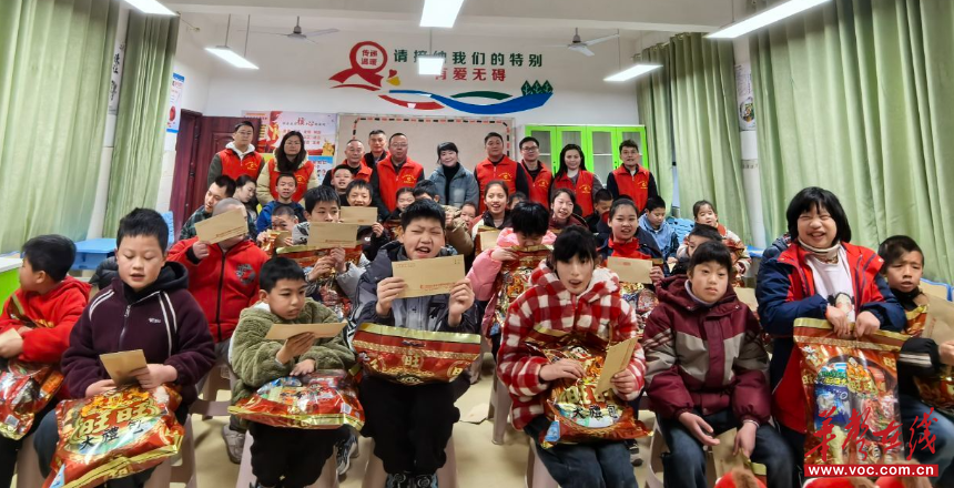 活动现场,衡山县烟草专卖局的工作人员热心关切这群特殊儿童,对特教老师们坚守教育初心、用爱心与耐心守护他们成长的奉献精神表示由衷敬佩。随后,工作人员将爱心礼物逐一送到孩子们手中,鼓励他们勇敢面对生活、快乐成长。孩子们脸上洋溢着纯真的笑容,用稚嫩的方式表达着感谢,现场氛围温馨而感人。