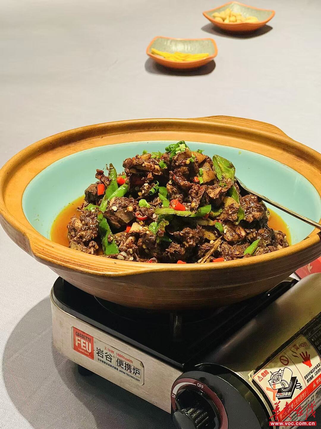 从此,血粑就成了这道菜的点睛之笔。选用生长期70天左右的当地麻鸭,配上用鸭血拌过的糯米粑,再加上有着百年历史的洪江甜酱——这种经天然发酵晒制的酱料,赋予了菜品酱香醇厚、咸鲜微辣的独特风味。鸭肉爆炒后炖煮,血粑吸收了鸭肉的油脂,变得外酥里糯;鸭肉沾染了血粑的米香,愈发醇厚。一口下去,既有山的厚重,又有水的灵动。这何尝不是洪江这座古商城的写照?大山深处的木材桐油,顺着沅江运往洞庭、长江;外头的盐巴布匹,又逆流而上进入湘西。洪江人在这来来往往中,学会了融合与包容。