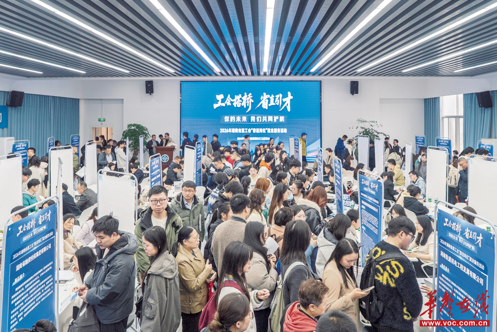 3月23日,学生在了解岗位信息。当天,2026年湖南省直工会“春送岗位”就业服务活动在中南大学岳麓山校区举办,近50家省直企事业单位提供1000余个岗位,吸引省内30余所高校及部分省外院校求职者参与。
