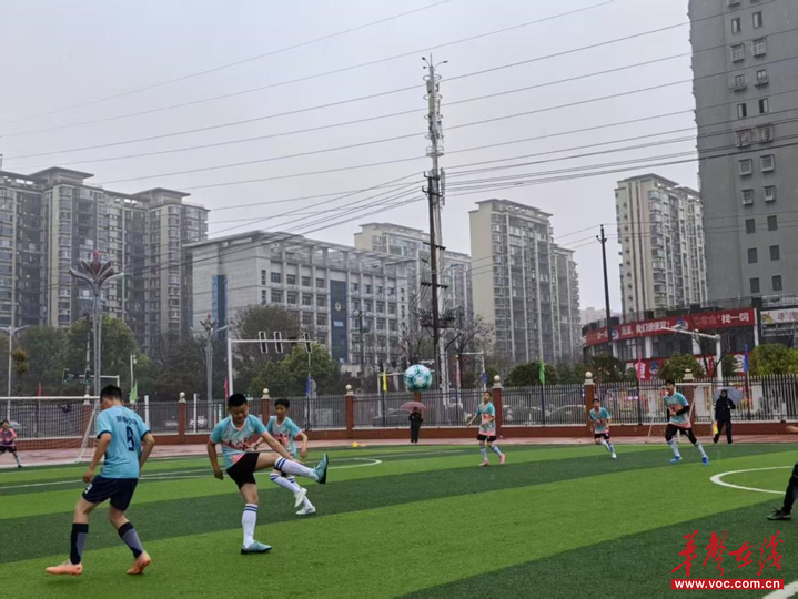 雨水不断浸湿队员们的球衣,却丝毫没有浇灭他们的拼搏热情,反而进一步锤炼着大家的体能与意志。奔跑中,有队员不慎滑倒,便立刻起身、拍去泥水,继续投入拼抢;对抗中,队员们相互鼓励、团结协作,始终保持高度专注,用坚持与执着诠释着体育精神。尽管天气条件恶劣,但小队员们从未退缩,在竞技较量中学会合作,在奋力拼搏中锤炼意志,在彼此交流中收获友谊,充分感受着体育运动带来的快乐与力量。
