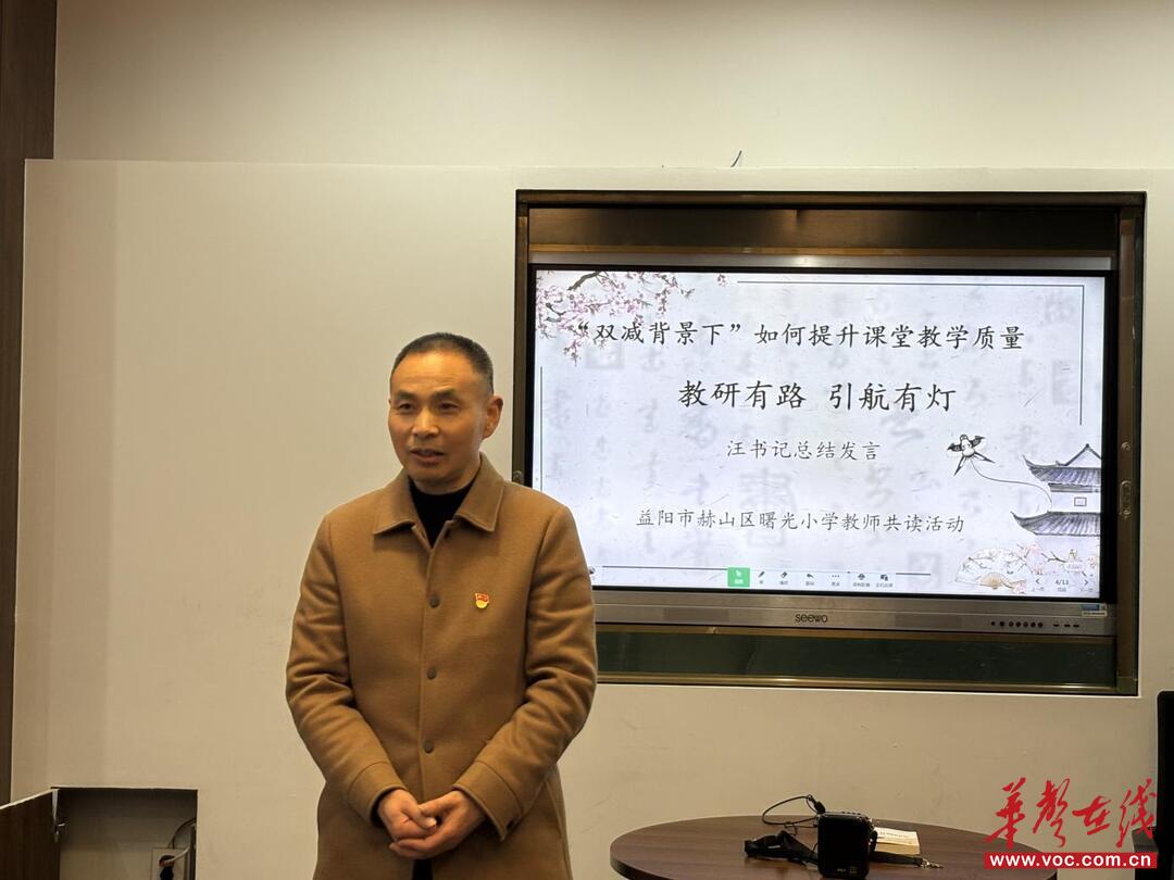 华声在线3月24日讯(通讯员 徐帅 汪志军)为深化“双减”背景下课堂教学质量提升的探索,3月24日,益阳市赫山区曙光小学全体教师开展《“双减”背景下如何提升课堂教学质量》首次读书交流会。全体教师共读一书、品茶研讨,围绕两大核心专题交流心得,探寻减负提质新路径。
