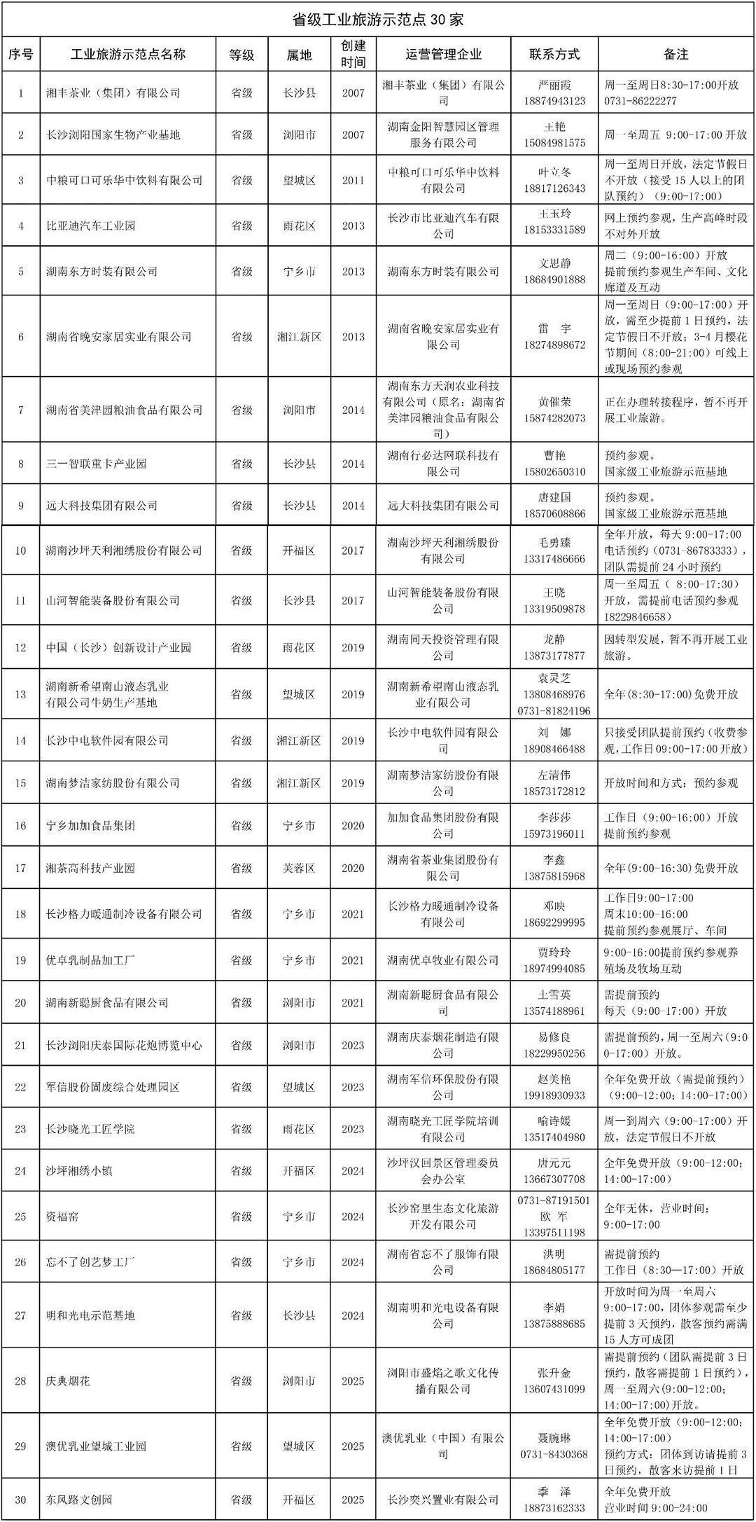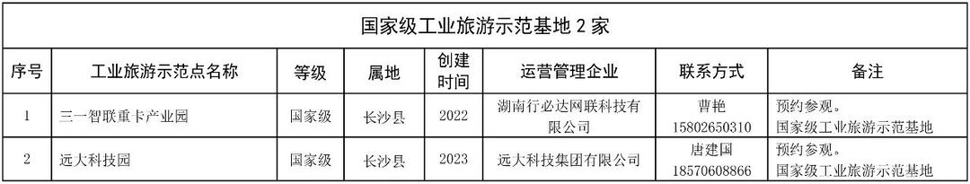 长沙市工业旅游示范单位统计表。长沙市文旅广电局供图。