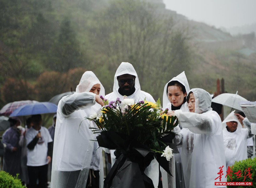 “端起碗,就想起了你……”熟悉的旋律伴随着雨声悠扬响起。今年,除了连续四年如期赴约的青年女高音歌唱家张泽艳女士外,现场还迎来了一位特别的参与者——来自江西南昌的罗贤平先生。他在媒体上关注到每年的祭奠活动后,怀揣赤诚之心远道而来,与张泽艳共同深情献唱。