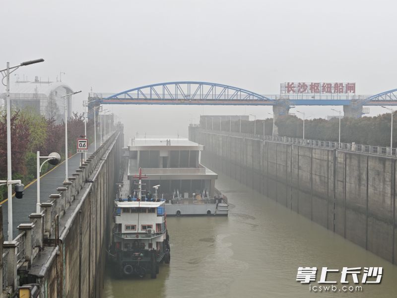 3月29日,湘江长沙综合枢纽船闸顺利完成“巨无霸”趸船过闸任务。 均为通讯员供图