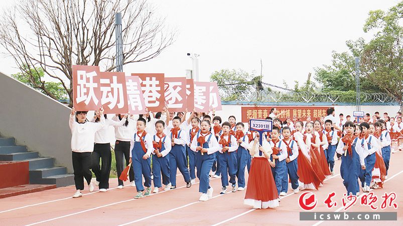 师大附中星城靖港学校“超级运动会”上,“雷小锋”们身着各种服装入场。长沙晚报通讯员 刘轩 供图