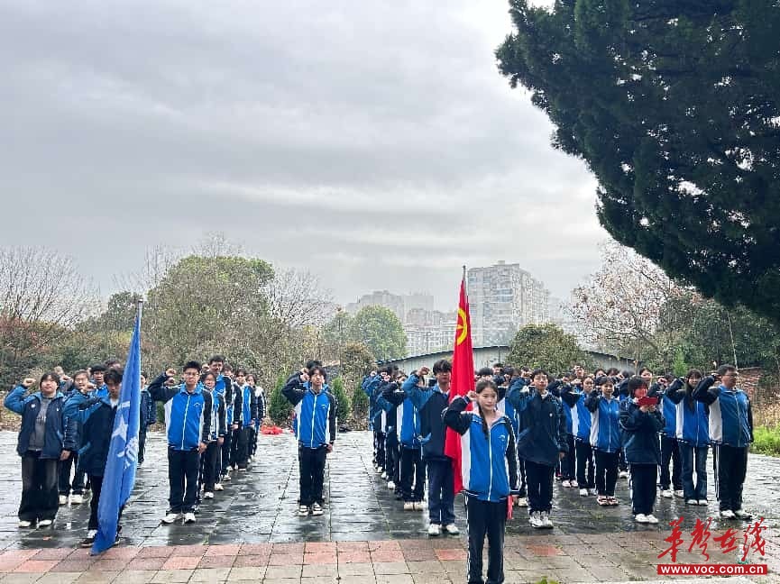 上午8时,师生们手持自制小白花集结出发,首站抵达匡互生墓。在庄严肃穆的氛围中,全体师生肃立默哀,学校领导、师生代表依次敬献花圈花篮,众人有序献上小白花。学生代表谢云秋铿锵演讲,抒发新时代少年的责任担当;刘宣盈同学领誓,全体学生高举右拳喊出“请党放心,强国有我”的青春誓言,政教处主任曾来宾号召学子将红色精神融入日常学习与生活,以英烈为榜样,勇毅前行。