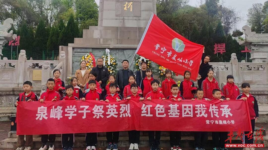 华声在线4月8日讯(通讯员 雷发丹)3月31日上午,常宁市泉峰小学少先队大队部在学校德育处的组织下,前往砚池山烈士陵园开展“泉峰学子祭英烈 红色基因我传承”清明祭扫活动。德育处主任黄薇带领处室成员全程参与,少先队辅导员詹宇主持仪式。
