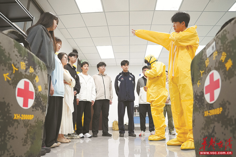 4月14日,南华大学核科学技术学院学生在国家核应急宣传和培训基地参加核应急知识的学习与演练。