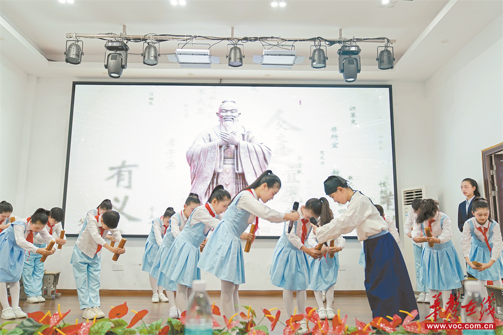 4月20日,资兴市图书馆,市二完小学生在朗诵诗文《礼润少年》。当天,2026年“书香资兴”全民阅读周暨“4·23”世界读书日系列活动在该馆举行。