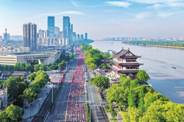 4月26日,2026湘江半程马拉松在长沙贺龙体育场南门鸣枪开赛。1.5万名跑者齐聚湘江岸,以奔跑点亮星城。