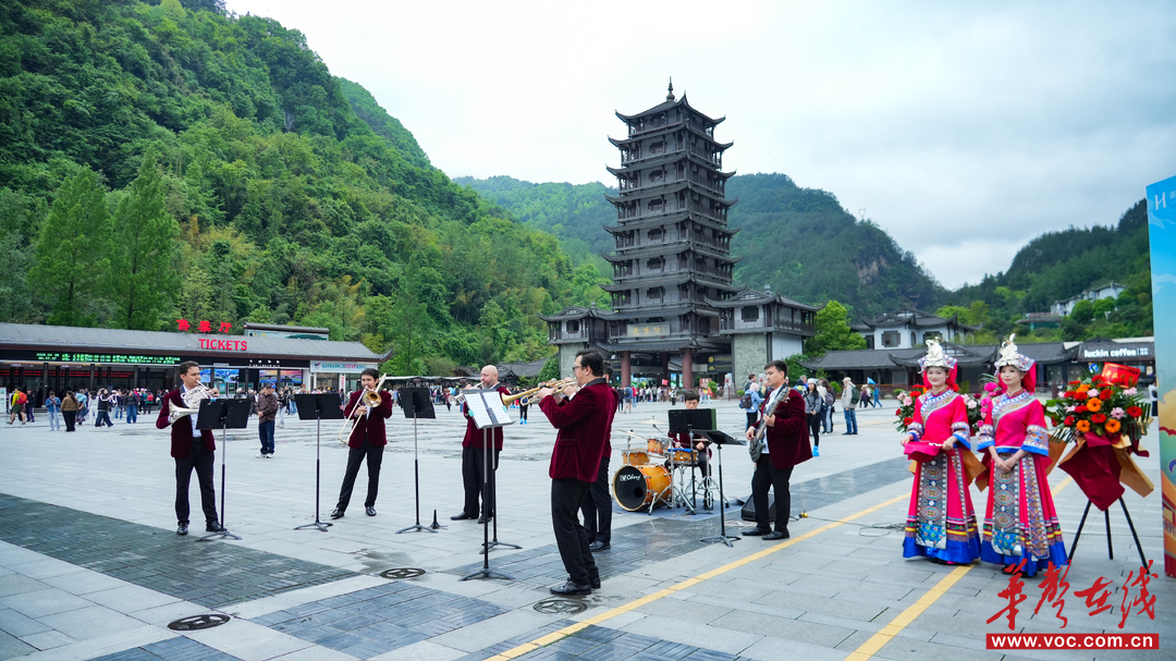 本次开街盛典由武陵源区委区政府牵头、湖南华夏投资集团打造,是区域重点文旅商业提质项目。张家界·标志门作为世界自然遗产、国家5A级旅游景区武陵源核心景区门户地标,融合土家族吊脚楼与中式牌楼风格,飞檐翘角,历来是游客必到打卡点。此次开街构建起“文旅+商业+民俗+科技”的沉浸式消费新场景。